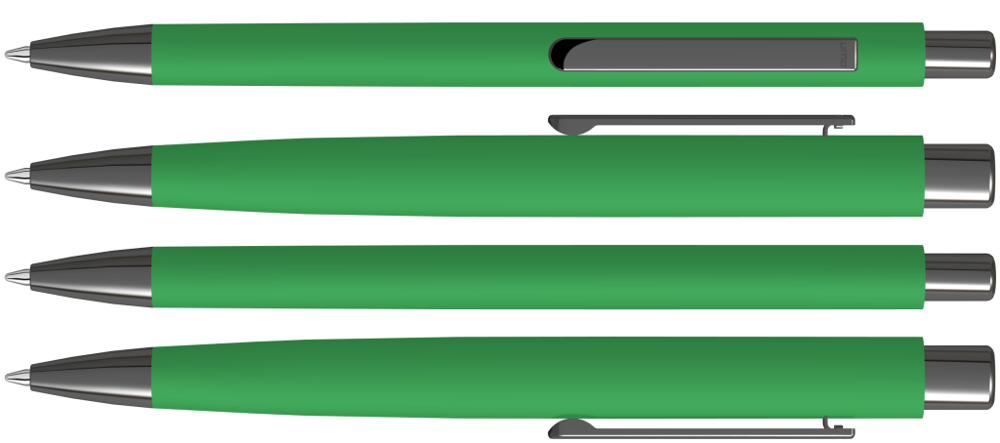 Metall-Druckkugelschreiber mit ellipsenförmigem Softtouch-Gehäuse. Metallclip, Metallspitze und ellipsenförmiger Drücker GUN metallic.