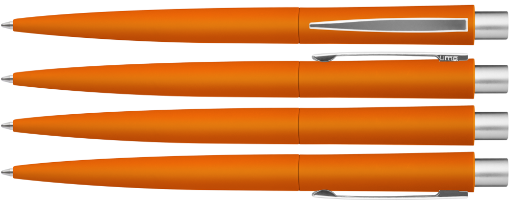 Metall-Druckkugelschreiber mit Softtouch-Gehäuse. Metallclip und Drücker matt verchromt.