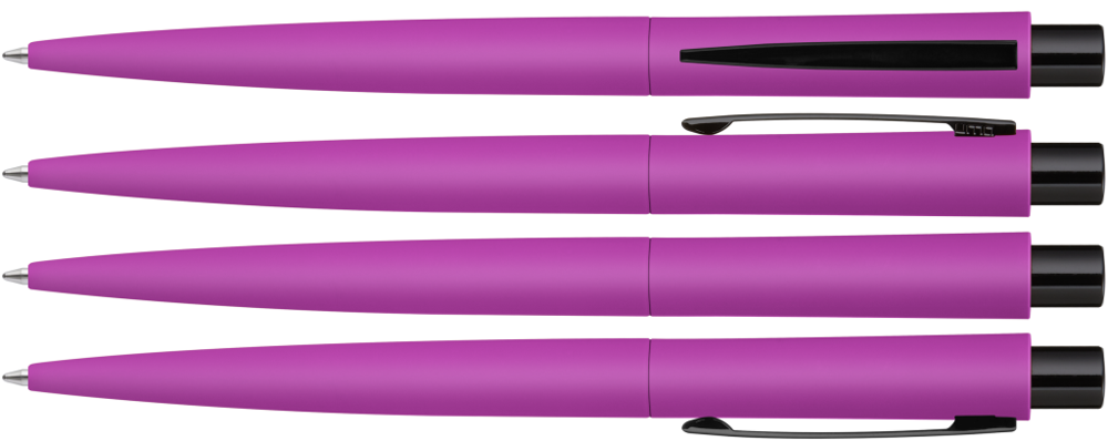 Metall-Druckkugelschreiber mit Softtouch-Gehäuse. Metallclip und Drücker schwarz glänzend.