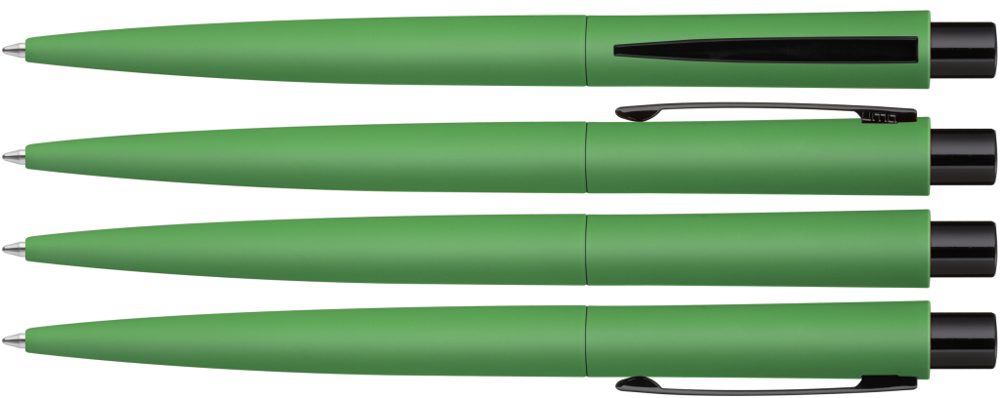 Metall-Druckkugelschreiber mit Softtouch-Gehäuse. Metallclip und Drücker schwarz glänzend.
