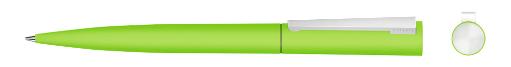 Metall-Drehkugelschreiber mit Softtouch-Gehäuse, gefederter Metallclip und Stopfen matt verchromt.