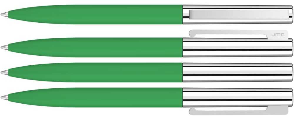 Metall-Drehkugelschreiber mit Softtouch-Schaft, glanzverchromtem Metalloberteil und gefederter Metallclip.