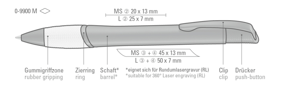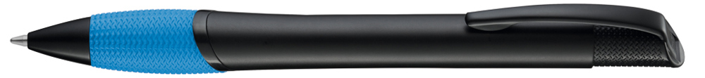 Metall-Druckkugelschreiber mit schwarz matt lackiertem Gehäuse, farbige Gummigriffzone und matt schwarzen Beschlagteilen.