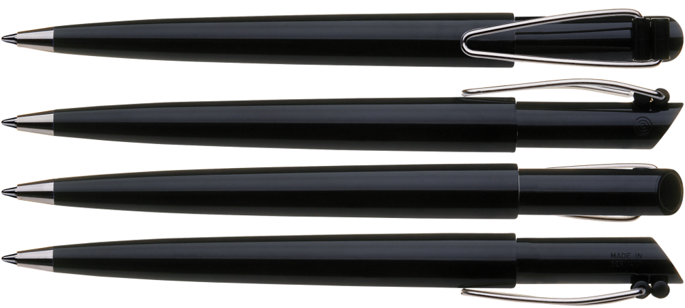 Druckkugelschreiber mit gedeckt glänzendem Gehäuse, vernickeltem Metallbiegeclip und Metallspitze. mehr