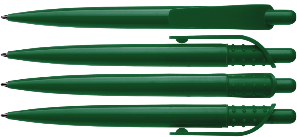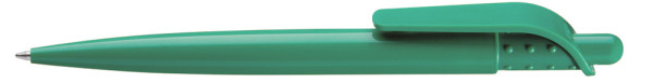 Druckkugelschreiber mit gedeckt glänzendem Gehäuse und großem Clip an genoppter Clipaufhängung. mehr