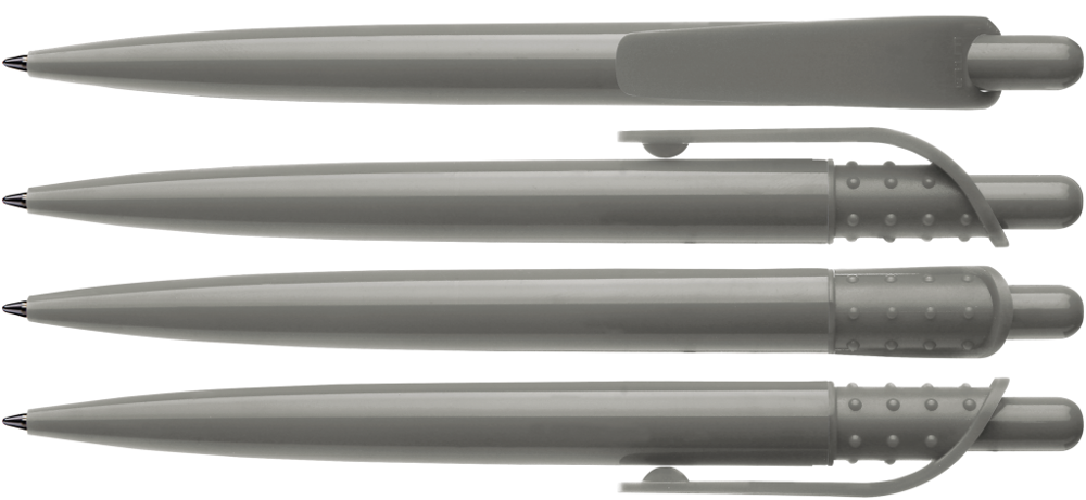Druckkugelschreiber mit gedeckt glänzendem Gehäuse und großem Clip an genoppter Clipaufhängung. mehr