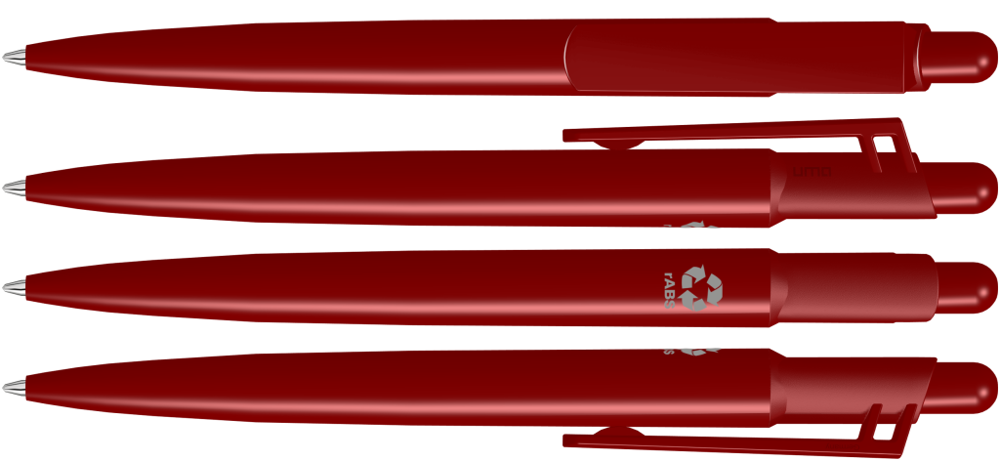 Druckkugelschreiber mit gedeckt glänzendem Gehäuse aus 100% recyceltem Kunststoff und großem Clip an verstärkter Clipanbindung. Das Modell ist mit dem dem rABS Logo gekennzeichnet. Dank der ClimatePartner-zertifizierten Produktion leistet der uma VITAN RECY einen zusätzlichen nachhaltigen Beitrag zur Schonung der Umwelt. Aufgrund der Besonderheit des Materials (ABS Recycled Plastic) sind produktionstechnische Farbschwankungen gegeben.