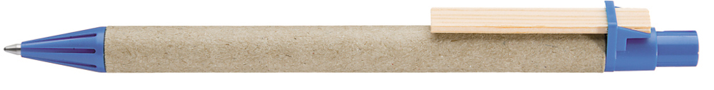 Druckkugelschreiber aus recycelter, naturfarbener Pappe. Spitze und Drücker unifarben aus recyceltem oder biologisch abbaubarem Kunststoff (*06-7527 Bio-Mix) sowie Holzclip.