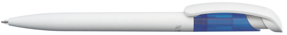 Druckkugelschreiber mit Gehäuse und Clip aus 100% nachwachsendem und kompostierbarem Material. Oberteil aus gefrostetem ABS Kunststoff.