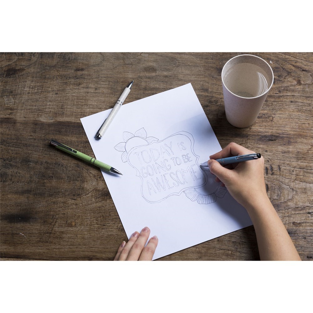 Blauschreibender Kugelschreiber mit Gehäuse aus 50% ABS und 50% Weizenstroh, Metallclip und... mehr