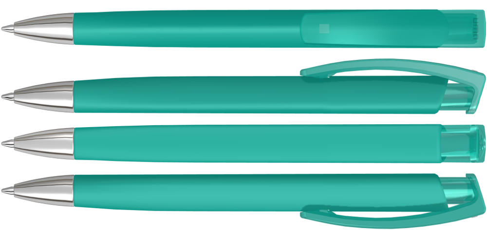 Druckkugelschreiber mit gedeckt mattem Dreikantgehäuse, transparent glänzendem Clip aus... mehr
