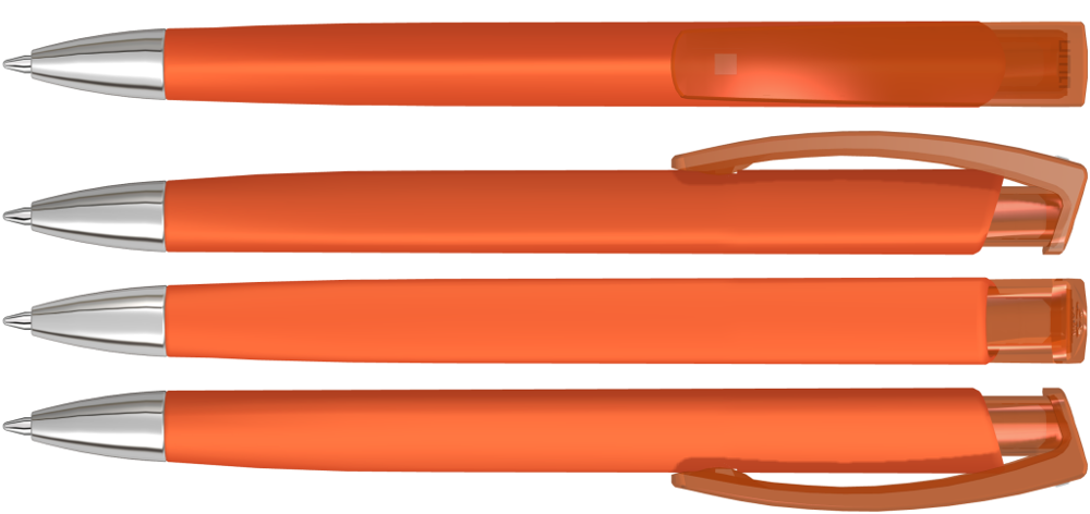 Druckkugelschreiber mit gedeckt mattem Dreikantgehäuse, transparent glänzendem Clip aus... mehr