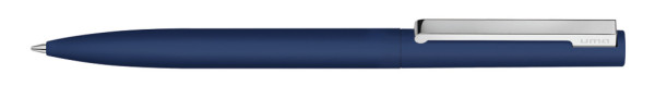 Metall-Drehkugelschreiber mit Softtouch-Gehäuse und gefedertem Metallclip silber glänzend.