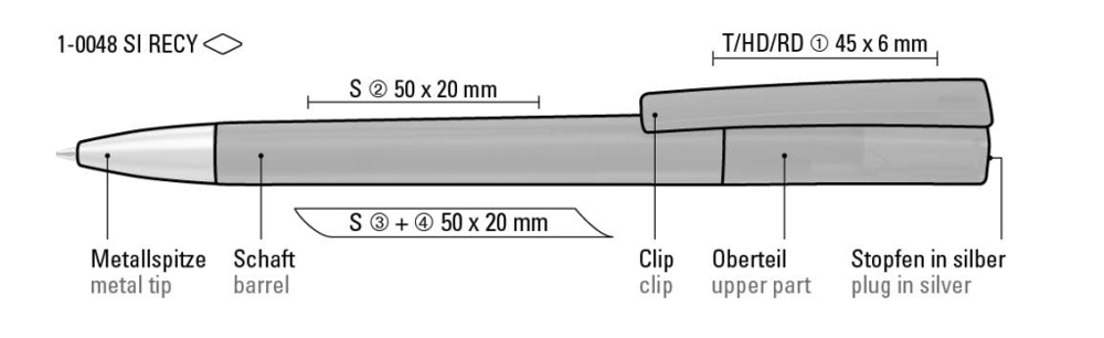 Drehkugelschreiber mit gedeckt mattem Gehäuse aus 100% recyceltem Post-Consumer-Kunststoff. Metallspitze matt verchromt. Das Modell ist mit dem Recyclingzeichen gekennzeichnet. Stopfen optional in verschiedenen matt gedeckten Farben oder silber (Standard ABS) erhältlich. Dank der ClimatePartner-zertifizierten Produktion leistet der uma ULTIMATE SI RECY einen zusätzlichen nachhaltigen Beitrag zur Schonung der Umwelt. Aufgrund der Besonderheit des Materials (Post-Consumer Recycled Plastic) sind produktionstechnische Farbschwankungen gegeben.