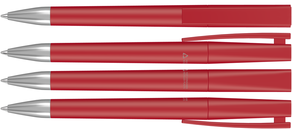 Drehkugelschreiber mit gedeckt mattem Gehäuse aus 100% recyceltem Post-Consumer-Kunststoff. Metallspitze matt verchromt. Das Modell ist mit dem Recyclingzeichen gekennzeichnet. Stopfen optional in verschiedenen matt gedeckten Farben oder silber (Standard ABS) erhältlich. Dank der ClimatePartner-zertifizierten Produktion leistet der uma ULTIMATE SI RECY einen zusätzlichen nachhaltigen Beitrag zur Schonung der Umwelt. Aufgrund der Besonderheit des Materials (Post-Consumer Recycled Plastic) sind produktionstechnische Farbschwankungen gegeben.