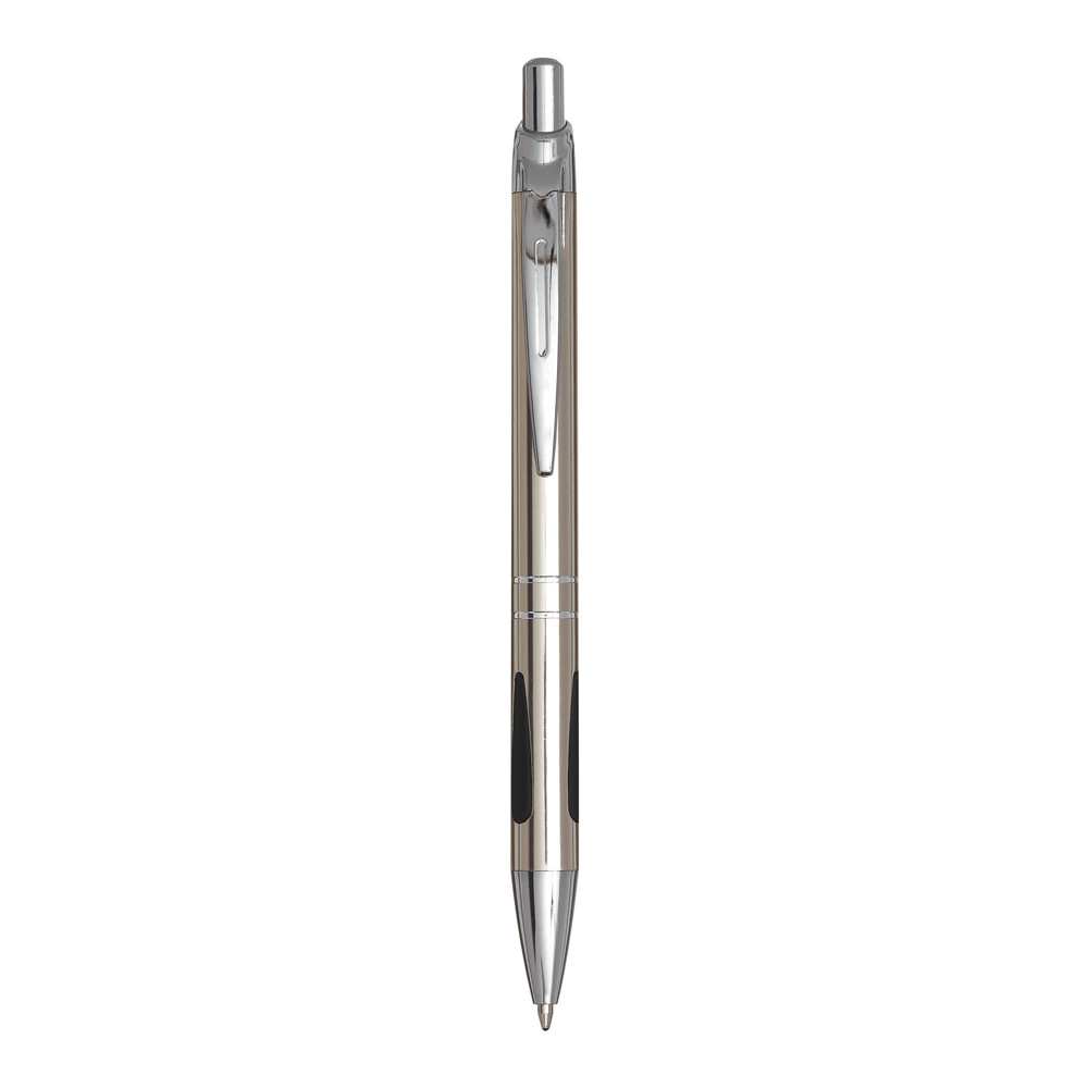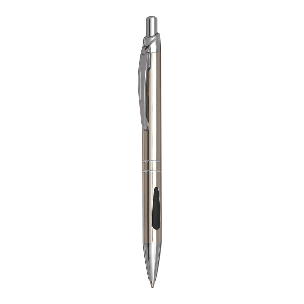 Aluminium-Kugelschreiber LUCERNE: mit glänzendem Aluminium-Schaft, teilgummierter Griffzone, Druckmechanismus, schwarzschreibend