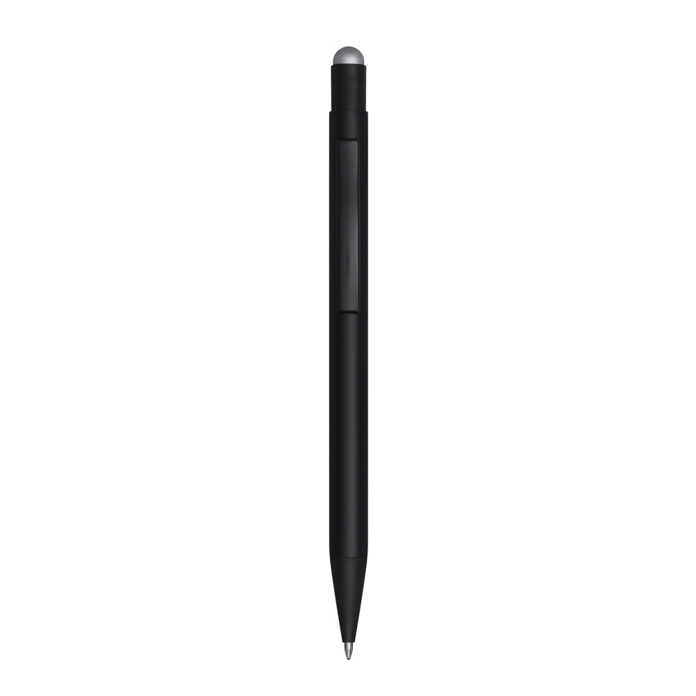 Aluminium-Kugelschreiber BLACK BEAUTY: mit mattem Aluminium-Schaft und farbiger Unterlegung für eine Gravur passend zur Farbe der Touchscreen-Spitze, Druckmechanismus, Großraummine, am Schaftende mit farbiger Touchscreen-Spitze, blauschreibend
