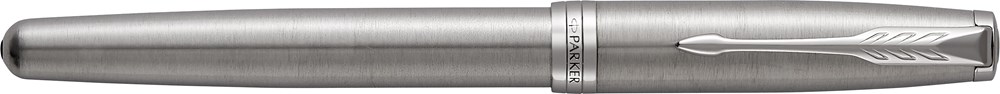 Parker Sonnet Tintenroller aus Edelstahl mit Kappe. Schreibfarbe: schwarz. Verpackt in einer Geschenkbox.
