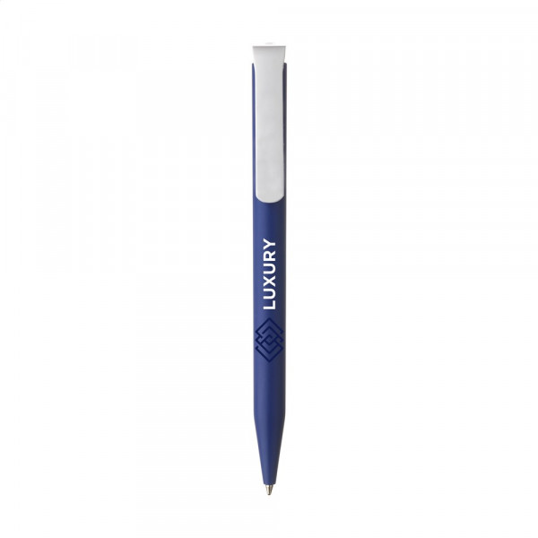 Blauschreibender Kugelschreiber der Marke Senator®. Der matte Griff besteht aus PLA-Granulat auf Zuckerrohrbasis und ist daher biologisch abbaubar. Der Stift wird mit Ökostrom und zertifizierten Verfahren gemäß der Umweltnorm ISO 14001 hergestellt. Ausgestattet mit großzügigem Clip/Druckknopf. Hergestellt in Deutschland.