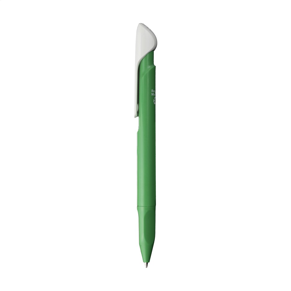 Blauschreibender Kugelschreiber der Marke Senator®. Hergestellt aus 95% recyceltem R-ABS-Material und wunderschön poliert. Der Stift fällt durch seinen ungewöhnlichen Clip und die durchdachte Spitze mit ergonomischem Griff ins Auge. Hergestellt in Europa. Leichte Unebenheiten in der Oberfläche des recycelten Materials sind möglich.