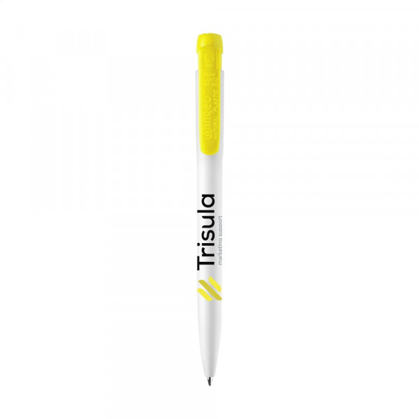Blauschreibender Kugelschreiber der Marke Stilolinea®. Der matte Halter ist aus Ingeo® PLA-Kunststoff gefertigt. Ingeo® ist ein Kunststoff, der aus Pflanzenfasern hergestellt wird. Dadurch ist der Stift zu 80% biologisch abbaubar und kompostierbar. Außerdem benötigt die Herstellung von Stiften aus PLA nur ein Drittel der Energie im Vergleich zur Produktion von ABS-Kunststoff. Mit Ingeo-Logo auf dem farbigen Clip/Druckknopf. Made in Italy.