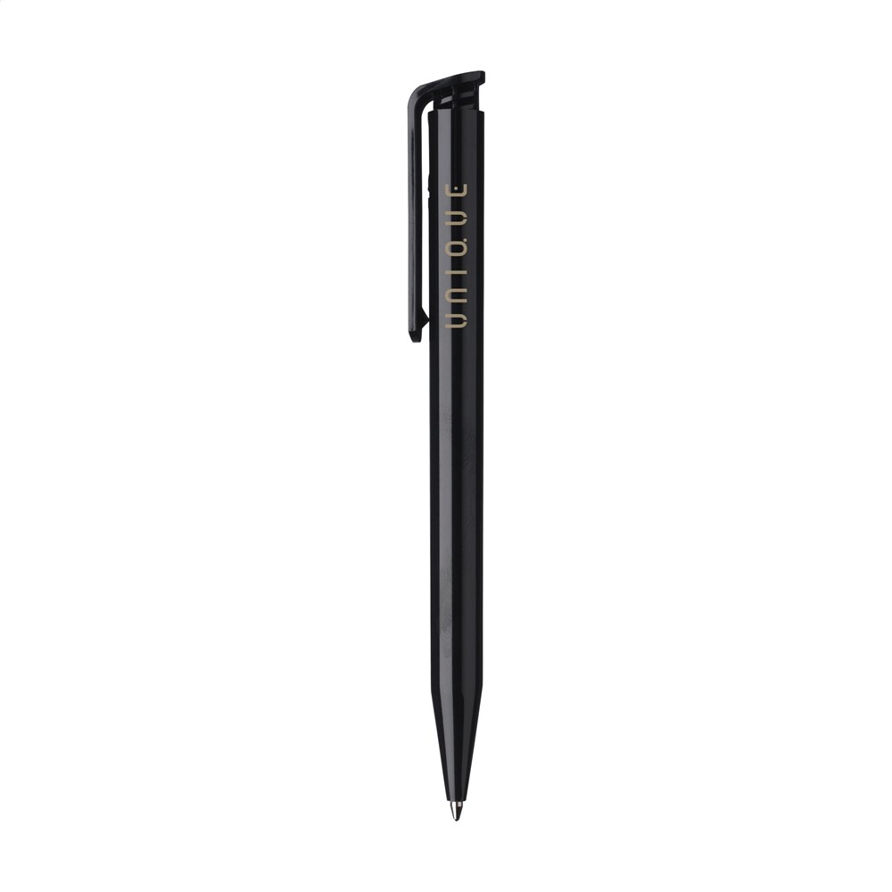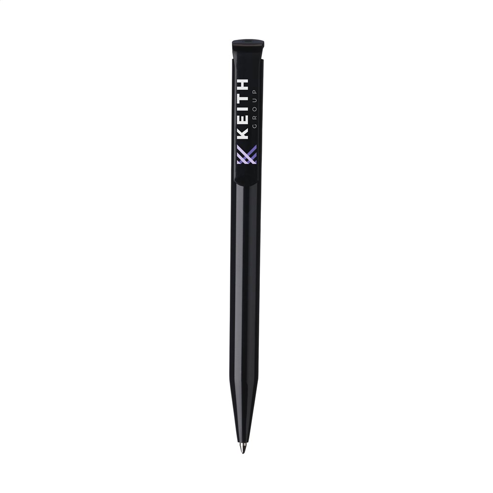 Blauschreibender Kugelschreiber der Marke Senator® in einem zeitlosen Design, poliertem Gehäuse und großzügigem Clip/Druckknopf. Made in Germany.