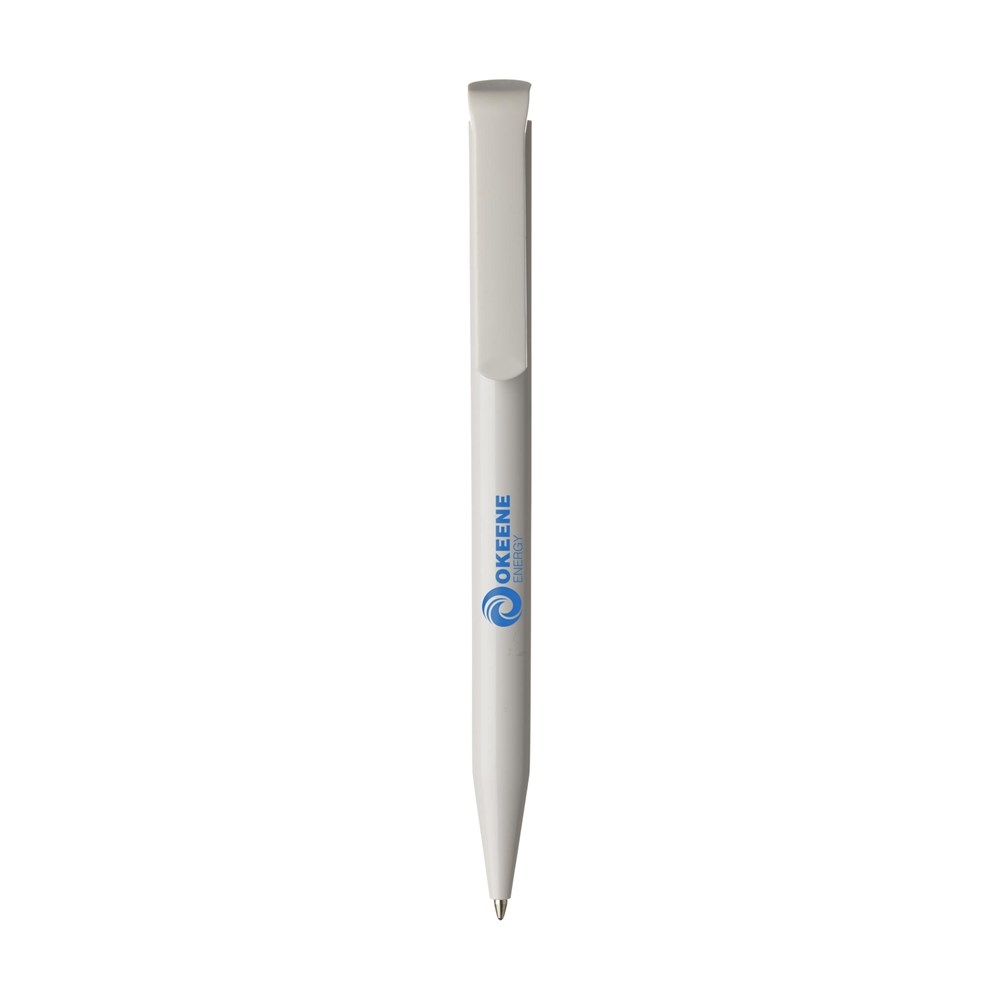 Blauschreibender Kugelschreiber der Marke Senator®. Mit poliertem Gehäuse und großem, auffallendem Clip und Druckknopf. Made in Germany.