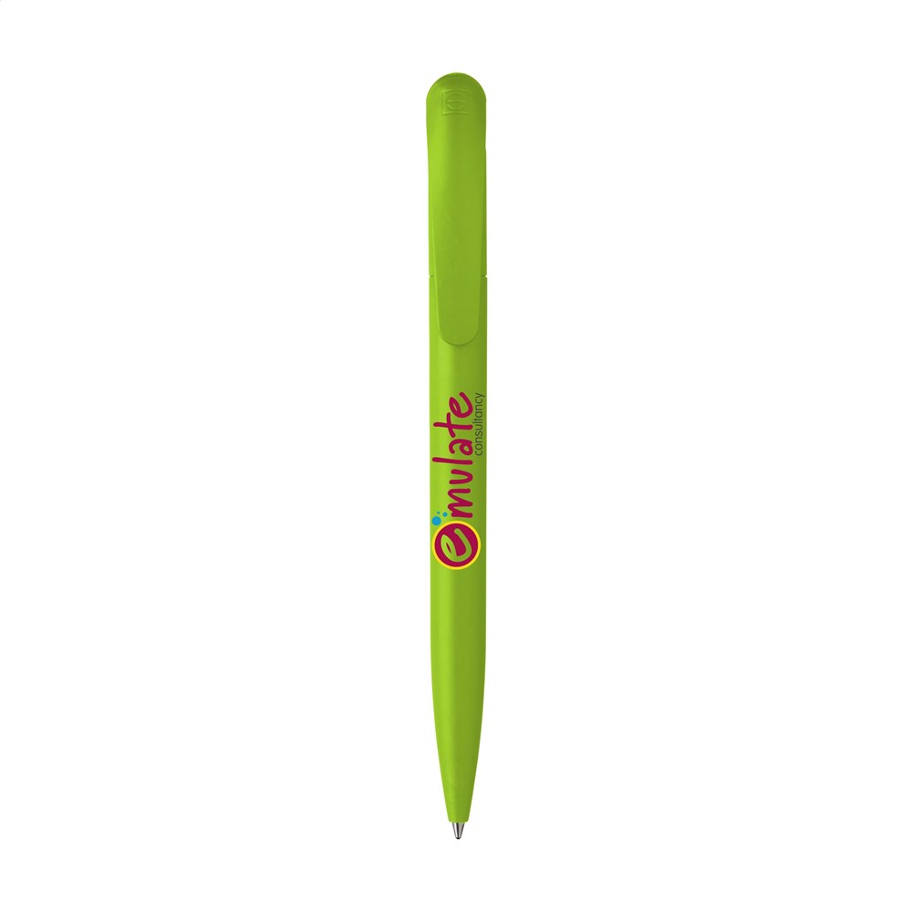 Blauschreibender Kugelschreiber der Marke Senator®. Biologisch abbaubar. Mit festem, mattgepolstertem Gehäuser und großzügigem, gebogenem Clip/Druckknopf. Gefertigt nach den europäischen Richtlinien EN 13432. Hergestellt in Europa.