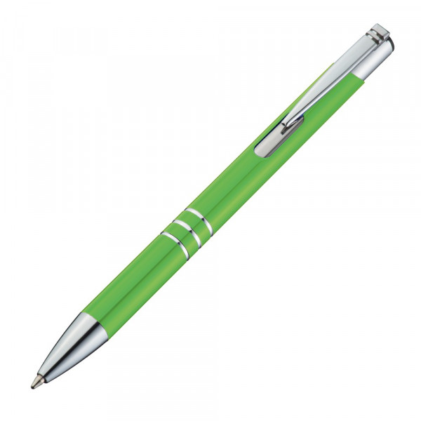 Unser eloxierter Kugelschreiber aus Metall mit 3 Zierringen und blau schreibender Großraummine... mehr
