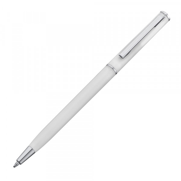 Unser Drehkugelschreiber mit blau schreibender Mine zeichnet sich durch seine schlanke Form aus und ist ideal für die Stiftelaschen in Notizbüchern geeignet. Ihre Werbung wird per Druck rechts vom Clip des Kugelschreibers angebracht, um Ihre Marke auf praktische und sichtbare Weise zu präsentieren.