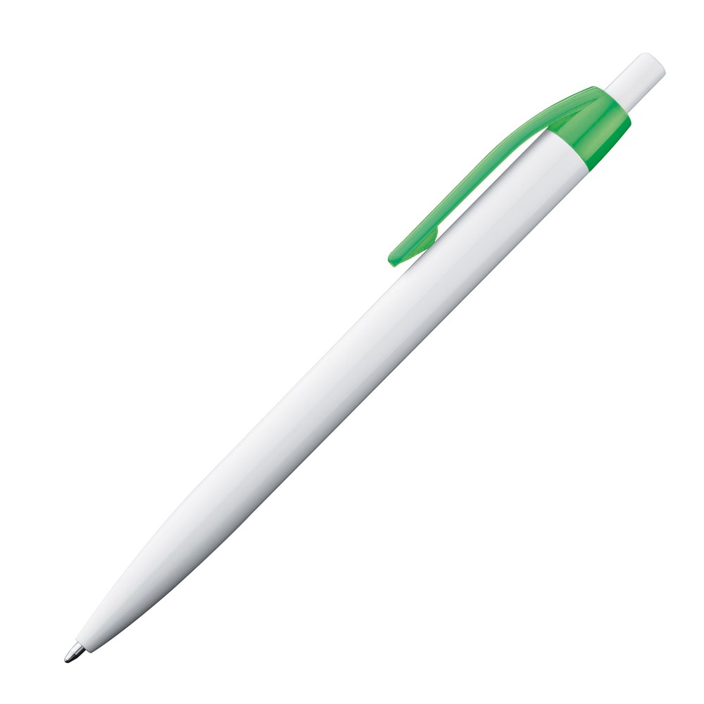Leuchtende Farben des Clips: Der farbige Clip hebt sich auffällig vom weißen Schaft ab und verleiht dem Kugelschreiber ein trendiges Aussehen.