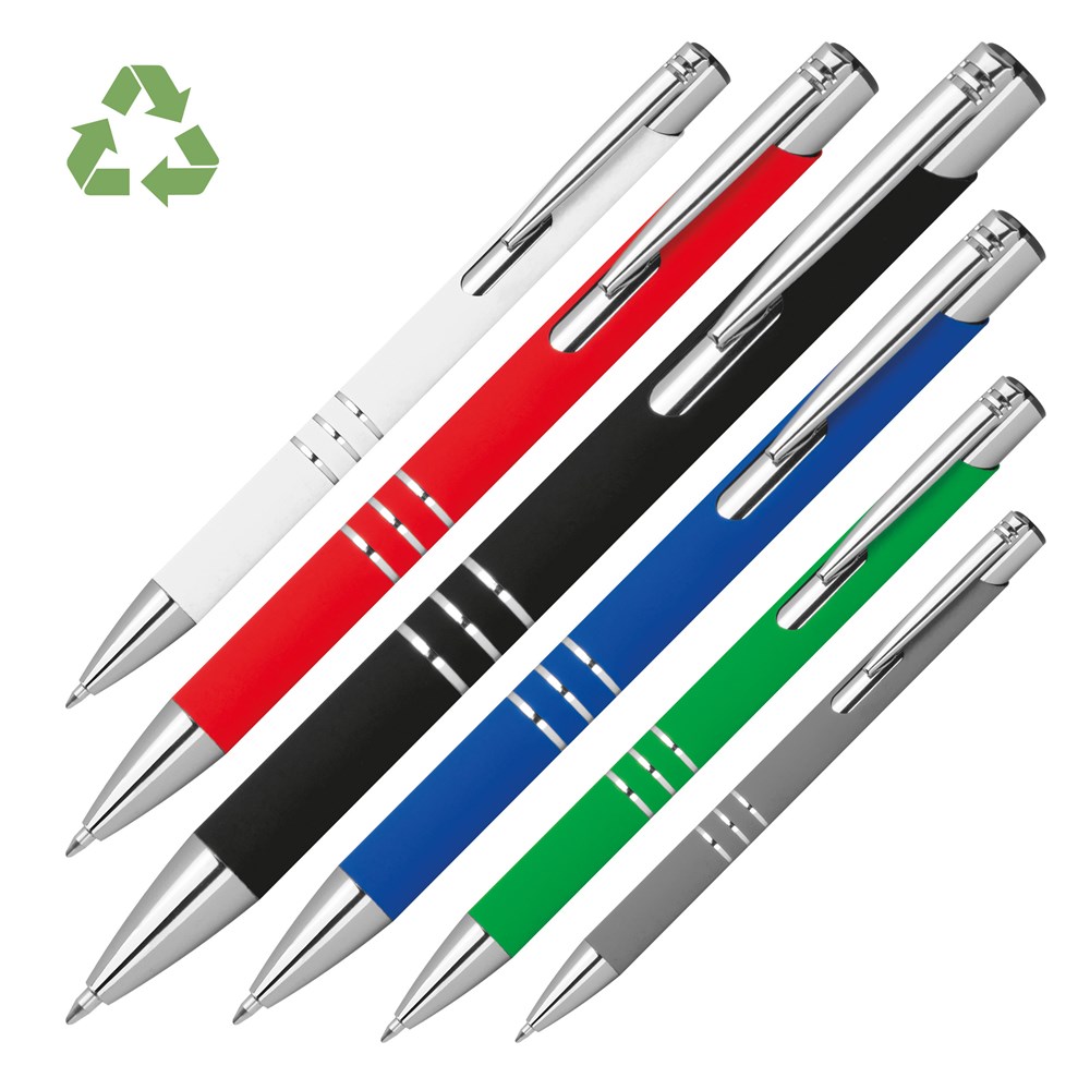 Recyceltes Aluminium: Der Kugelschreiber besteht aus recyceltem Aluminium, das Ressourcen spart und eine bewusste Alternative darstellt.