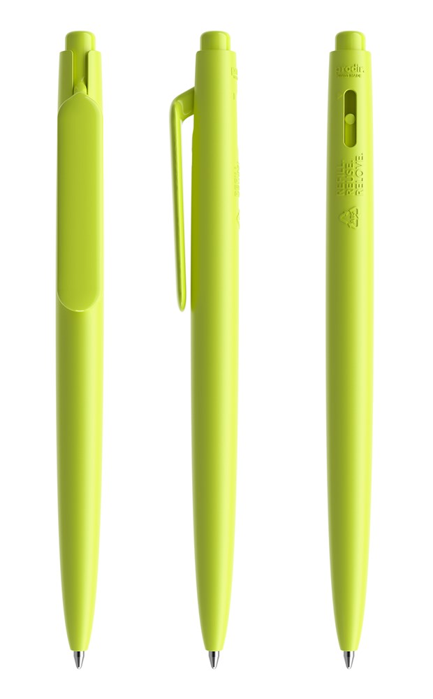 Druckkugelschreiber mit Gehäuse aus 100% recyceltem Kunststoff (ABS) in den Farben Weiss und Schwarz und aus 50% recyceltem Kunststoff in allen anderen Farben. Standardversionen in zehn matten Farben verfügbar. Sonderfarben nach PMS bereits ab 5.000 Stück erhältlich. Oberflächenmix bei Clip und Gehäuse. Clip in zehn polierten Farben. Zwei Druckflächen, Clip in bis zu sechs Farben bedruckbar.
