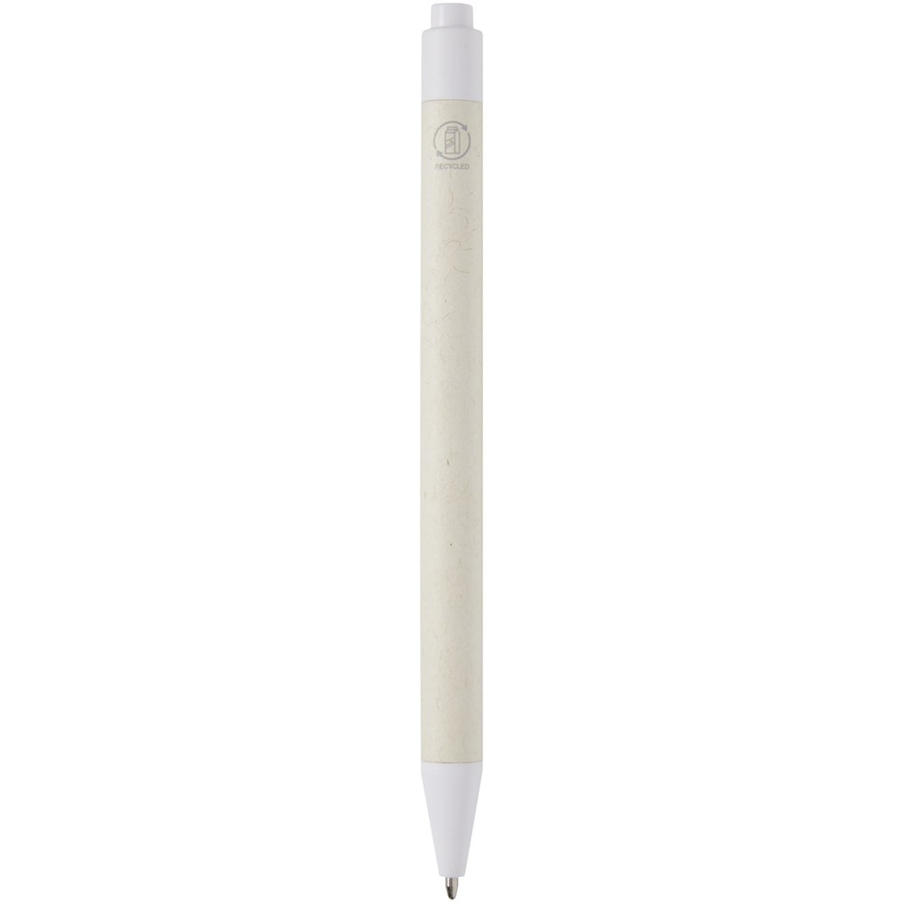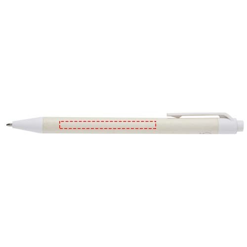 Kugelschreiber mit Druckmechanik und einem Schaft aus recycelten Milchtüten (bis zu 70 %). Der Druckknopf, der Clip und die Spitze sind aus PLA-Kunststoff gefertigt. Gebrauchte Milchtüten werden gesammelt, sortiert, verarbeitet und in Papier umgewandelt, sodass aus Abfall wirklich etwas Nützliches wird.