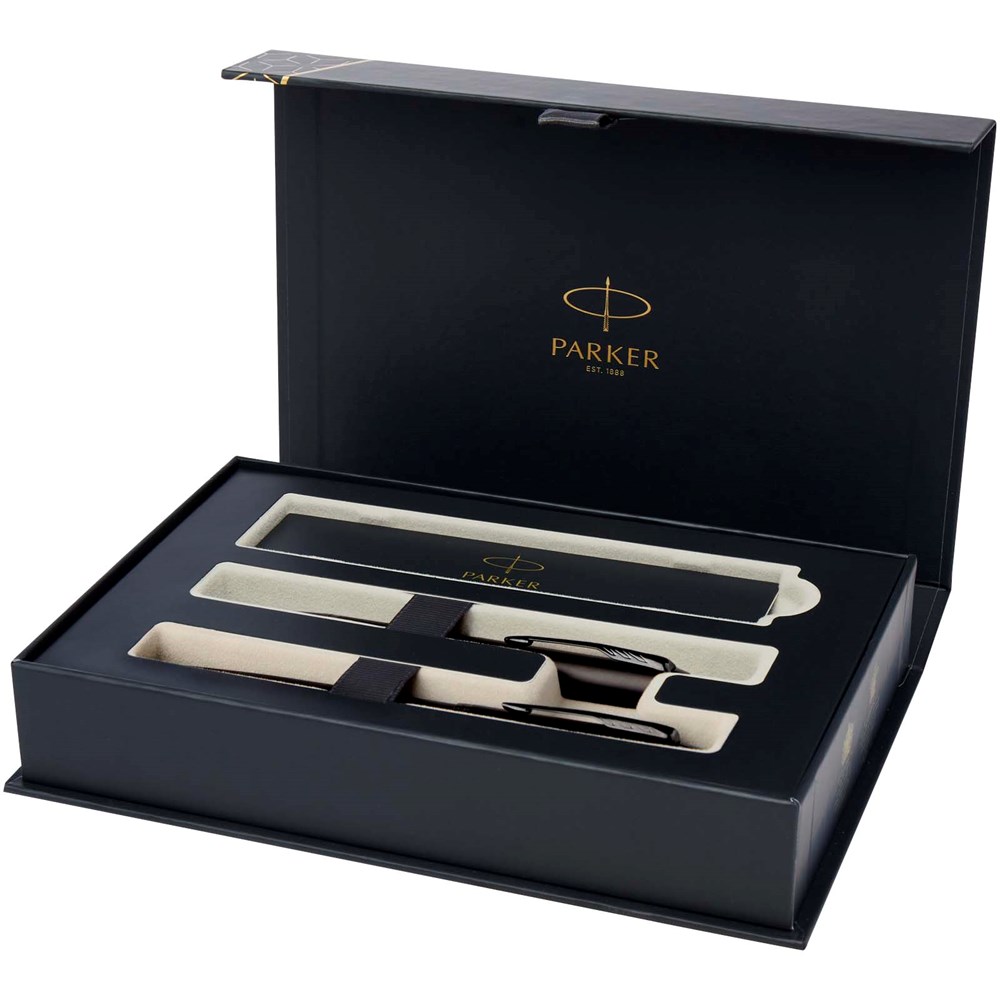 Parker IM achromatisches Kugelschreiber und Tintenroller Set mit Präsentbox (schwarze/blaue Mine)