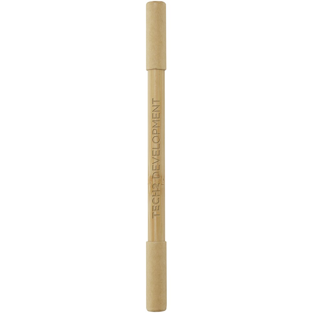 Der Samambu Bambus Duo-Stift hat zwei Köpfe: Ein Kugelschreiber und ein Kugelschreiber ohne Tinte. Für den Kugelschreiber ohne Tinte sind keine Tintenpatronen oder Nachfüllminen erforderlich. Die schwarze Grafitspitze des Stiftes hinterlässt sichtbare Spuren, wenn sie mit der Schreibfläche in Kontakt kommt. Wenn Sie sich für einen Kugelschreiber aus Bambus entscheiden, treffen Sie eine nachhaltigere Wahl und fördern die Verwendung erneuerbarer Materialien. Der Kugelschreiber hat schwarze Tinte, eine Spitze von 1,00 mm und eine Schreiblänge von 600 Metern. Schreiblänge des Kugelschreibers ohne Tinte: 1500 Meter.