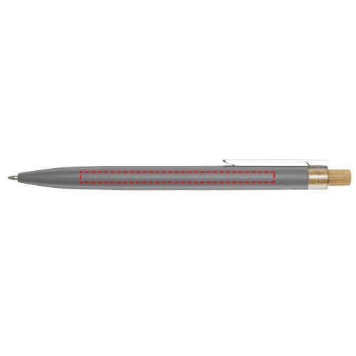 Der Nooshin Kugelschreiber wird aus recyceltem Aluminium hergestellt, was weniger Energie benötigt als die Herstellung von Aluminium aus Rohstoffen. Es reduziert außerdem die Abfallmenge auf Mülldeponien und trägt dazu bei, natürliche Ressourcen zu schonen und Treibhausgasemissionen zu reduzieren. Druckknopf ist aus Bambus gefertigt. Tintenfarbe: Blau. Schreiblänge: 800 Meter. Spitzengröße: 1,00 mm.