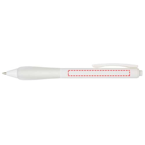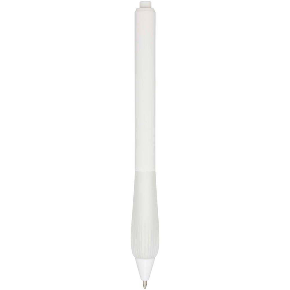 Kugelschreiber aus recyceltem Kunststoff mit gummiertem Schaft und Griff aus TPR. Tintenfarbe: Schwarz. Schreiblänge: 1000 Meter. Strichstärke: 1,0 mm.