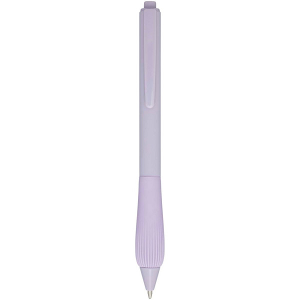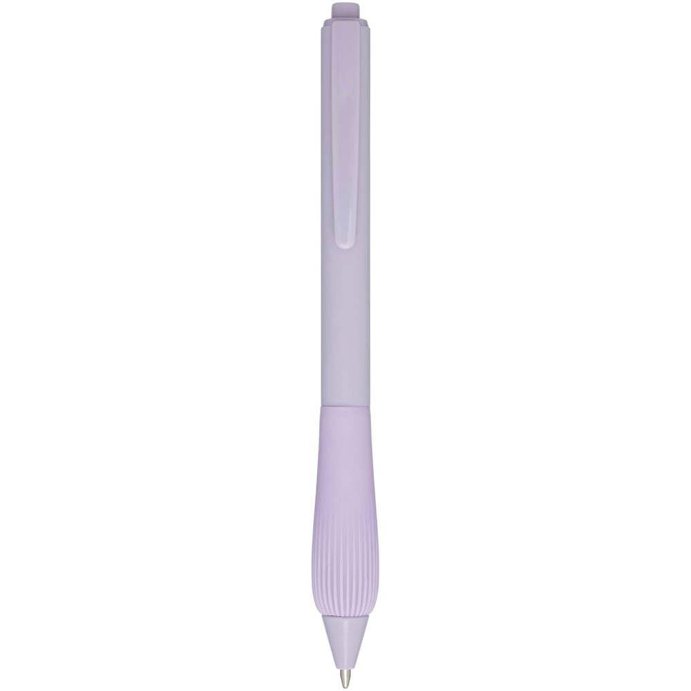 Kugelschreiber aus recyceltem Kunststoff mit gummiertem Schaft und Griff aus TPR. Tintenfarbe: Schwarz. Schreiblänge: 1000 Meter. Strichstärke: 1,0 mm.