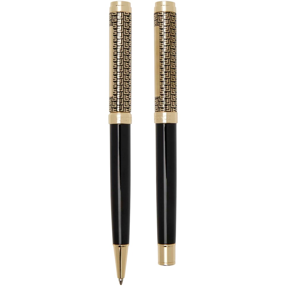 Das Legato Stifteset ist eine elegante Kombination aus einem Kugelschreiber und einem Tintenroller. Beide Kugelschreiber haben einen oberen Schaft aus recyceltem Messing mit goldfarbener Verchromung, einen unteren Schaft mit schwarzer Pulverbeschichtung, goldfarbene Metallaccessoires, ein LUXE-Logo auf dem mittleren Ring und blaue Tinte. Der Kugelschreiber hat eine Schreiblänge von 800 m und eine Strichstärke von 1,00 mm. Der Tintenroller hat eine Schreiblänge von 400 m und eine Strichstärke von 0,7 mm.