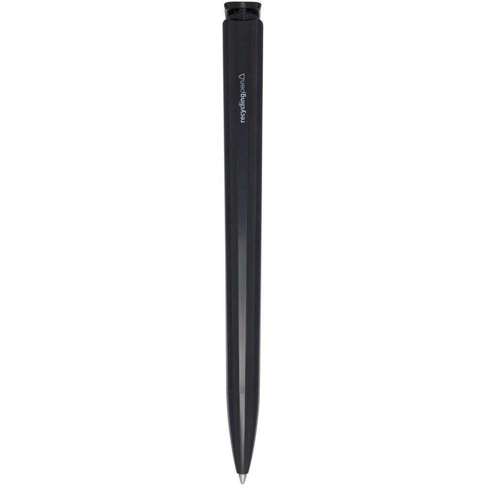 Kugelschreiber mit Schaft, Clip und Spitze aus recyceltem Kunststoff. Tintenfarbe: Blau. Schreiblänge: 3000 Meter. Strichstärke: 1,00 mm. Hergestellt in Deutschland.