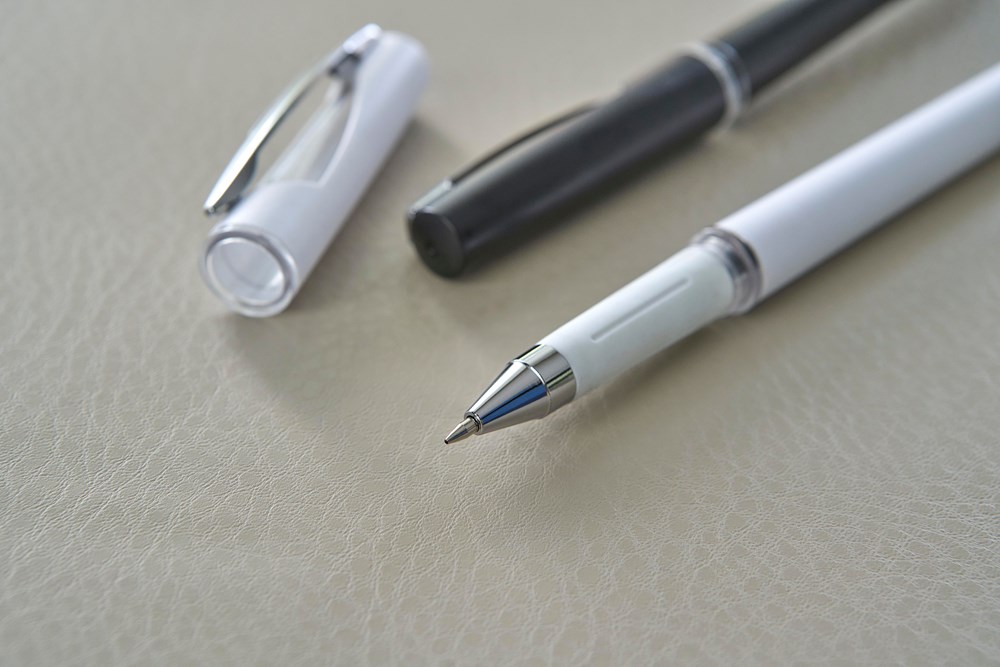 Gel-Tintenschreiber aus ABS mit Metallclip und ABS-Kappe. Die Kappe hat ein transparentes Fenster. Schwarze Tinte mit einer Schreiblänge von 400 m.
