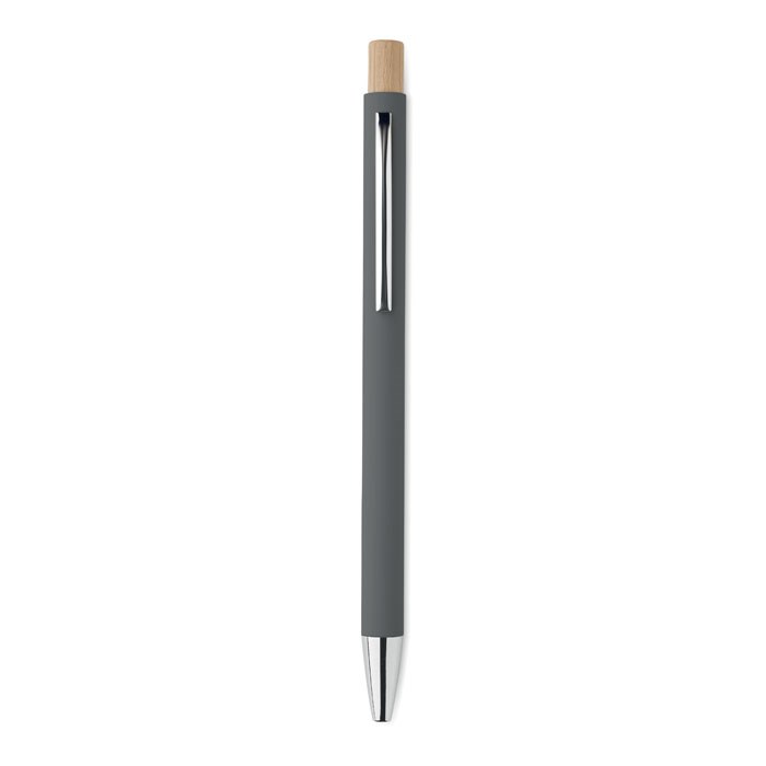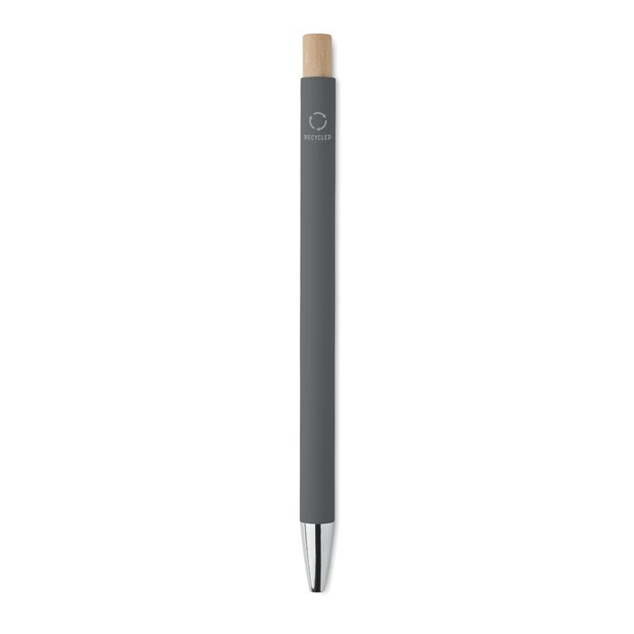 Druckkugelschreiber aus recyceltem Aluminium mit Druckknopf aus Bambus. Silberne Spitze und Clip.... mehr