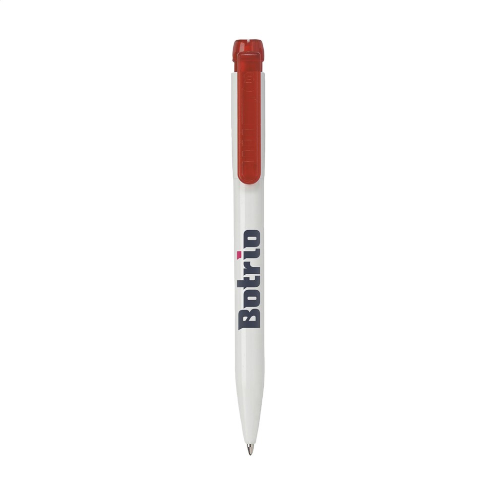 Blauschreibender Kugelschreiber der Marke Stilolinea®. Mit transparentfarbenem Clip/Druckknopf.... mehr