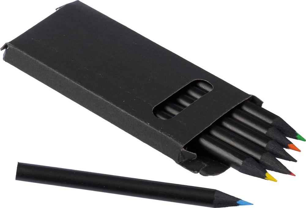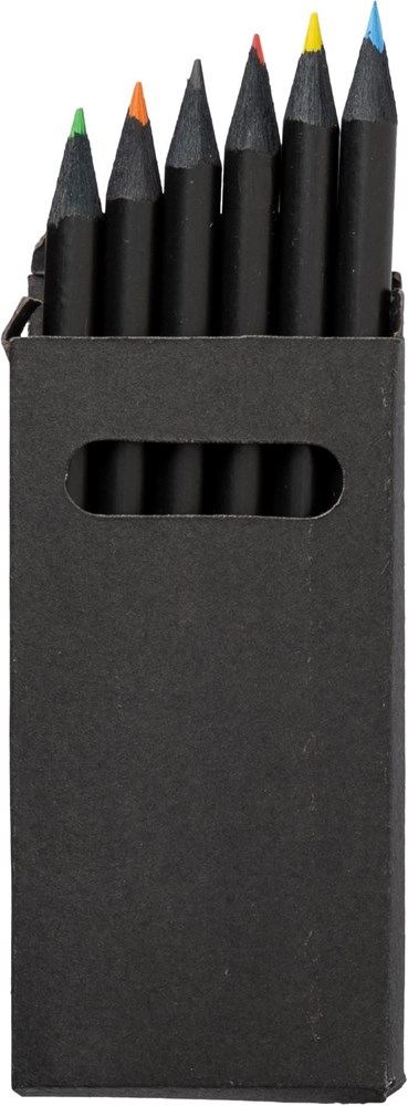Buntstifte, 6er-Set, in einem recycelten schwarzen Karton.