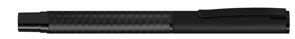 Metall-Rollerball mit Schaft aus Carbonfaser in schwarz und gefedertem Metallclip. Beschlagteile schwarz matt lackiert.