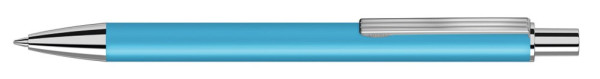 Metall-Druckkugelschreiber mit matter Oberfläche aus recyceltem Aluminium. Metallclip mit eingelassenen Rillen, Metallspitze und Drücker in silber glänzend.