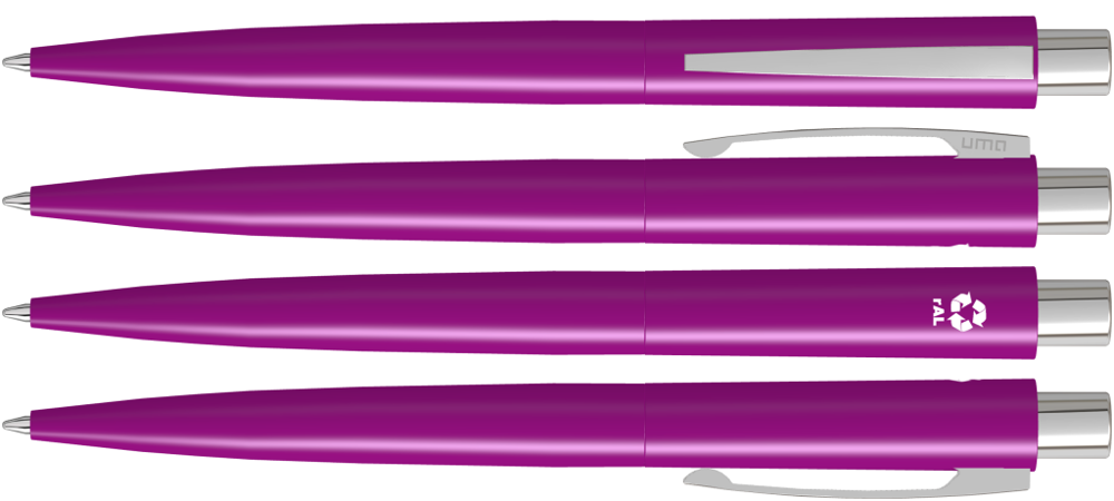 Metall-Druckkugelschreiber mit matt lackiertem Gehäuse aus recyceltem Aluminium. Metallclip und Drücker glanzverchromt.