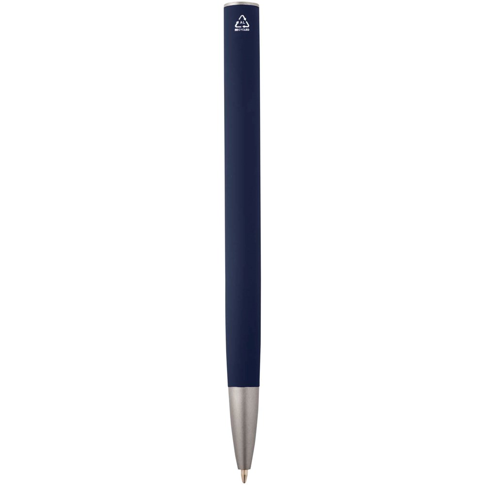 Kugelschreiber mit Schaft aus recyceltem Aluminium und silberfarbenem Clip aus ABS Kunststoff. Recyceltes Aluminium reduziert die Menge an Deponiemüll, schont die natürlichen Ressourcen und reduziert die Treibhausgasemissionen. Tintenfarbe: Schwarz. Schreiblänge: 800 Meter. Schreibspitze: 1 mm.