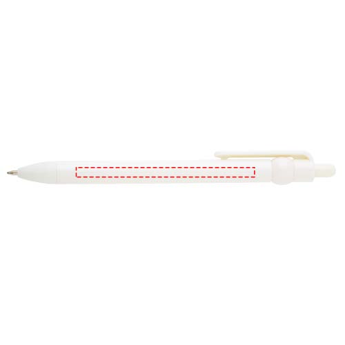 Der Fidget Kugelschreiber mit schwarzer Tinte wird aus recyceltem Kunststoff hergestellt und verfügt über eine integrierte Drehkugel in der Nähe des Clips, die Funktionalität mit einem spielerischen Element verbindet. Schreibspitze: 1 mm. Schreiblänge: 1000 Meter.